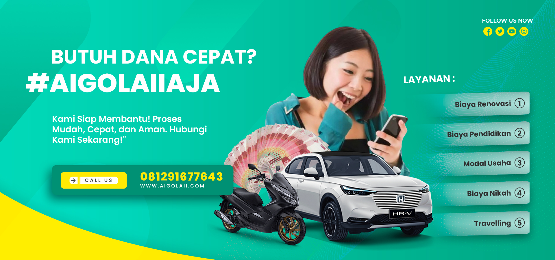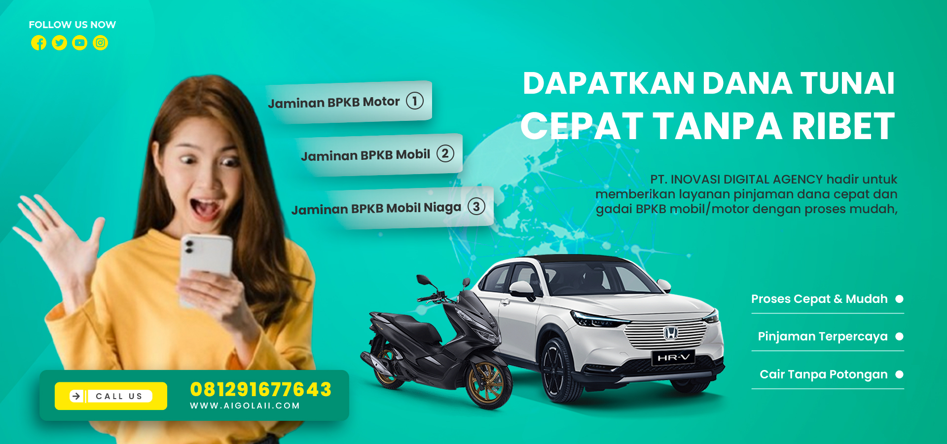 Selain layanan pinjaman dana cepat, kami juga menyediakan layanan gadai BPKB mobil, motor & mobil niaga